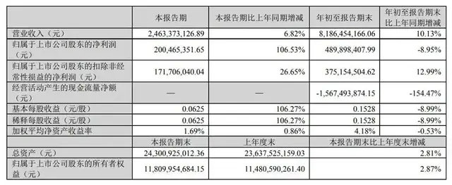 前三季度,公司净利近5亿元,尤其7月-9月,净利同比增长106.5%。