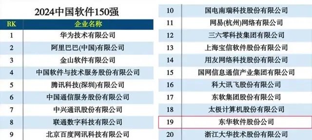 从竞争力来看,在“2024中国软件150强”榜单上,东华位列第19位。