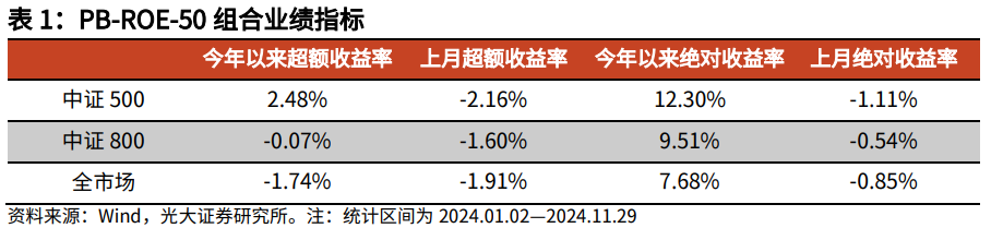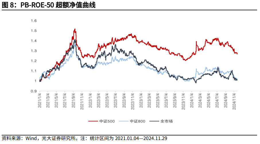 PB-ROE-50政策在各市集股票池逾额收益出现回撤。基于中证500股票池获取逾额收益-2.16%。基于中证800股票池获取逾额收益-1.60%。基于全市集股票池获取逾额收益-1.91%。