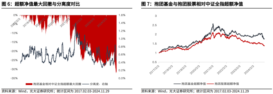 适度2024年11月29日,基金抱团分离度环比上月下行,基金抱团进度有所加强。最近一月抱团股和抱团基金逾额收益出现回撤。