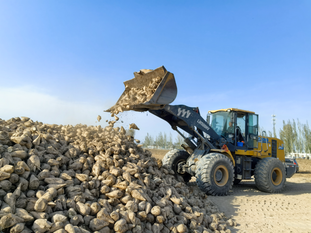 近日,在永昌农场百亩甜菜覆按田庐,采挖机正开足马力,在田间贸易穿梭,伴跟着机器的轰鸣声,呈现出一片忙活的丰充风光。